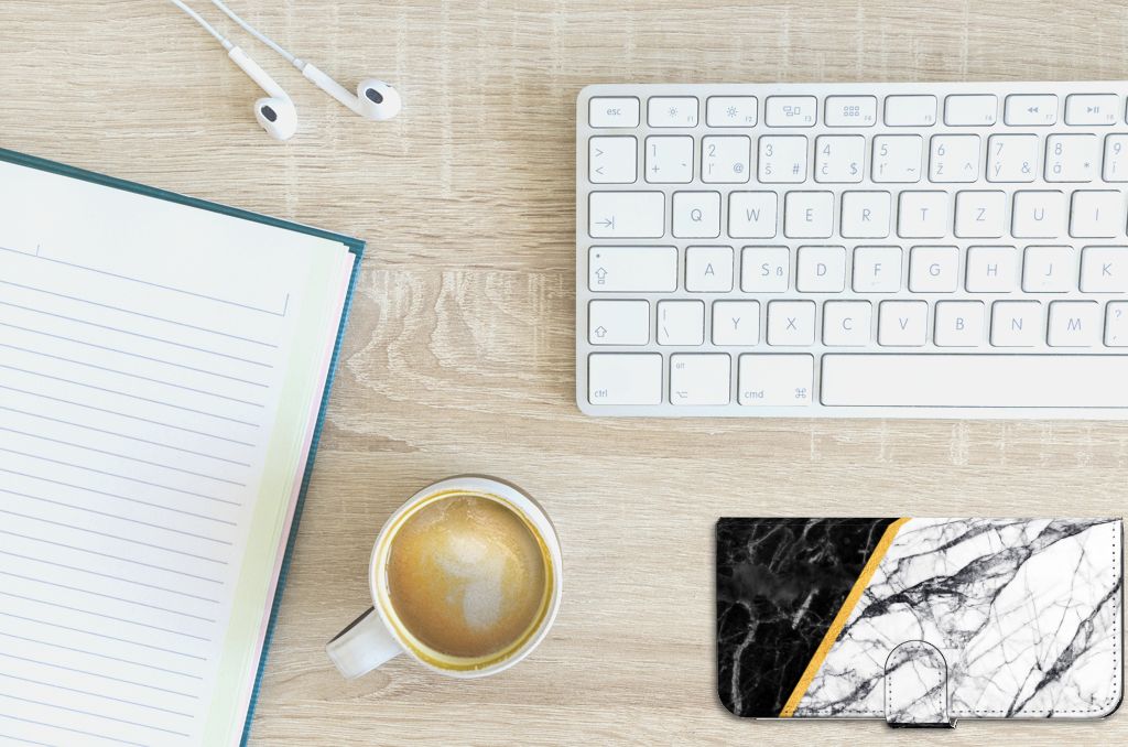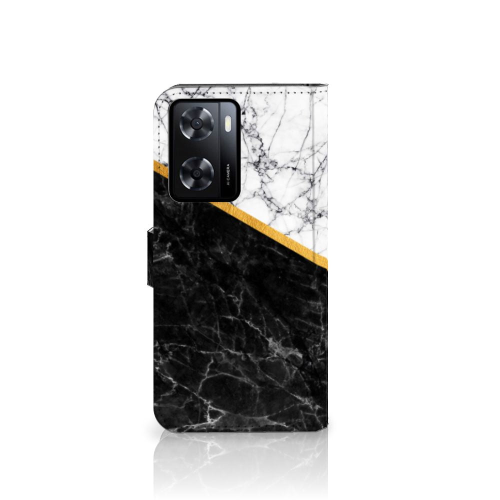 PPO A57 | A57s | A77 4G Bookcase Marmer Wit Zwart - Origineel Cadeau Man