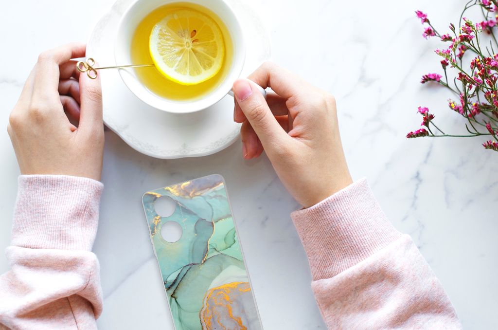 TPU Siliconen Hoesje voor OPPO A58 4G Marmer Groen
