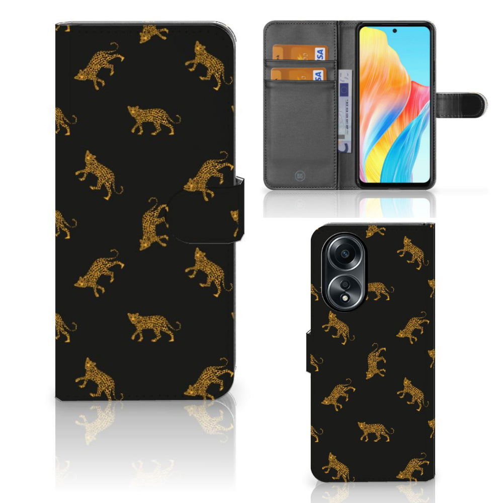 Telefoonhoesje met Pasjes voor OPPO A58 4G Leopards