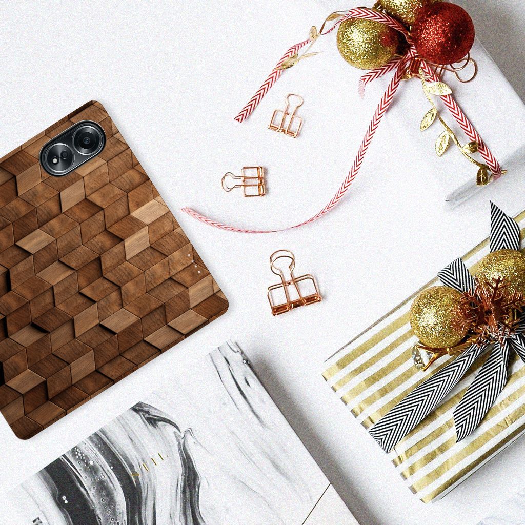 Book Wallet Case voor OPPO A58 4G Wooden Cubes