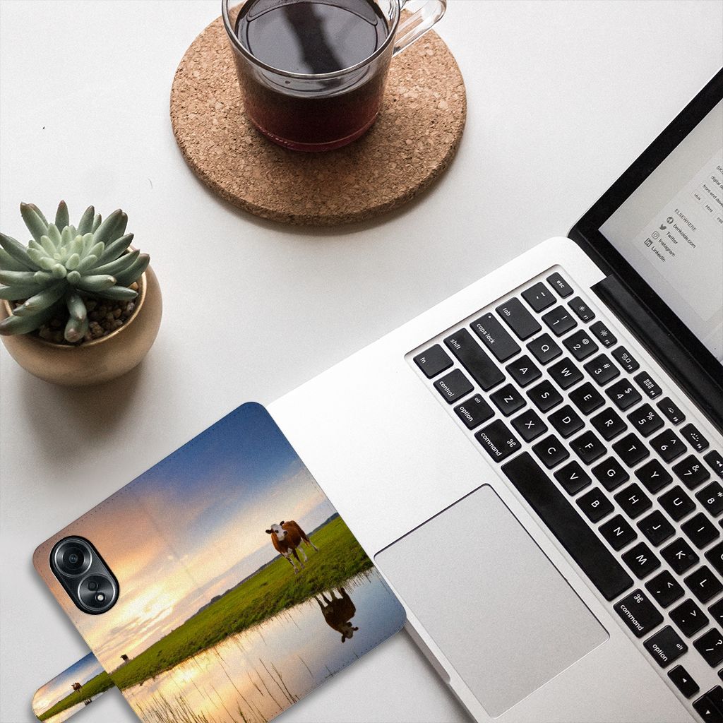 OPPO A58 4G Telefoonhoesje met Pasjes Koe