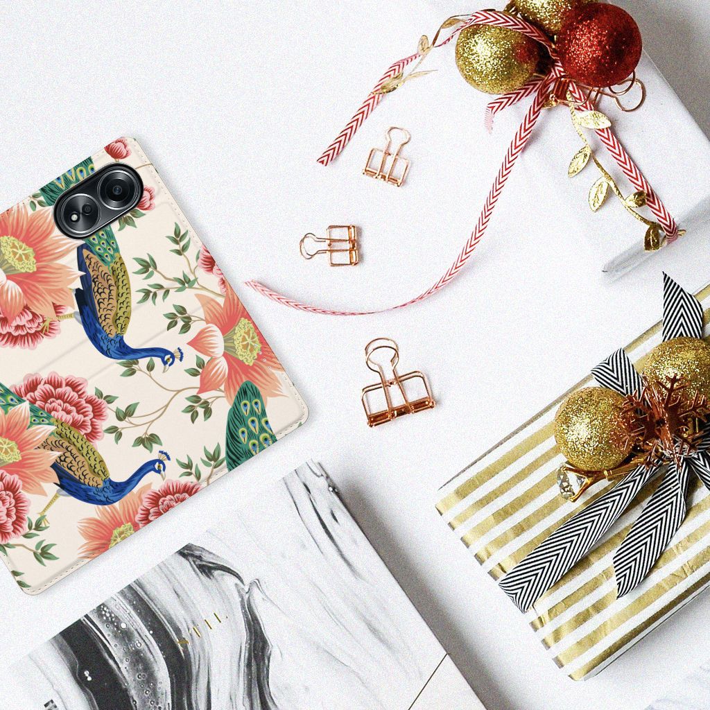 Telefoonhoesje met Pasjes voor OPPO A58 4G Vintage Pauwen