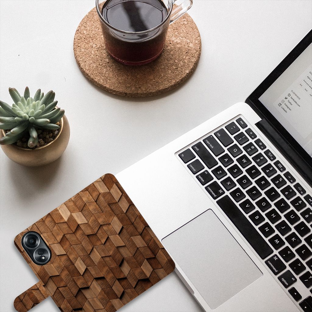Book Style Case voor OPPO A58 4G Wooden Cubes