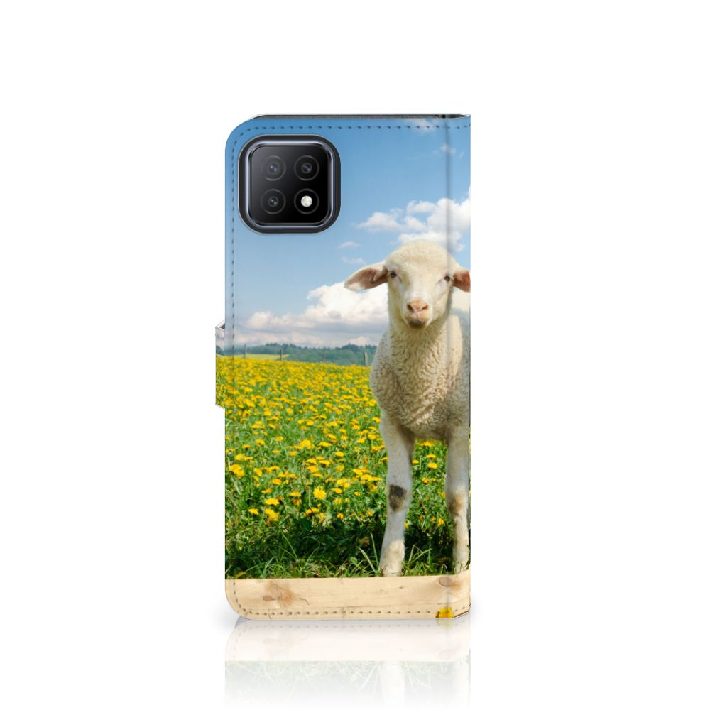 OPPO A73 5G Telefoonhoesje met Pasjes Schaap en Lammetje
