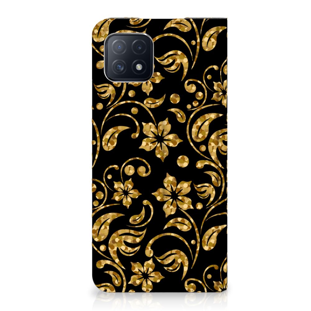 OPPO A73 5G Smart Cover Gouden Bloemen