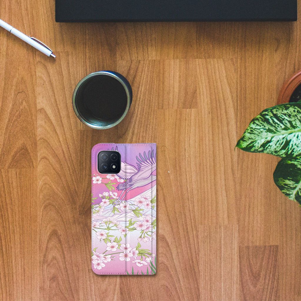 OPPO A73 5G Telefoonhoesje met Pasjes Bird Flowers