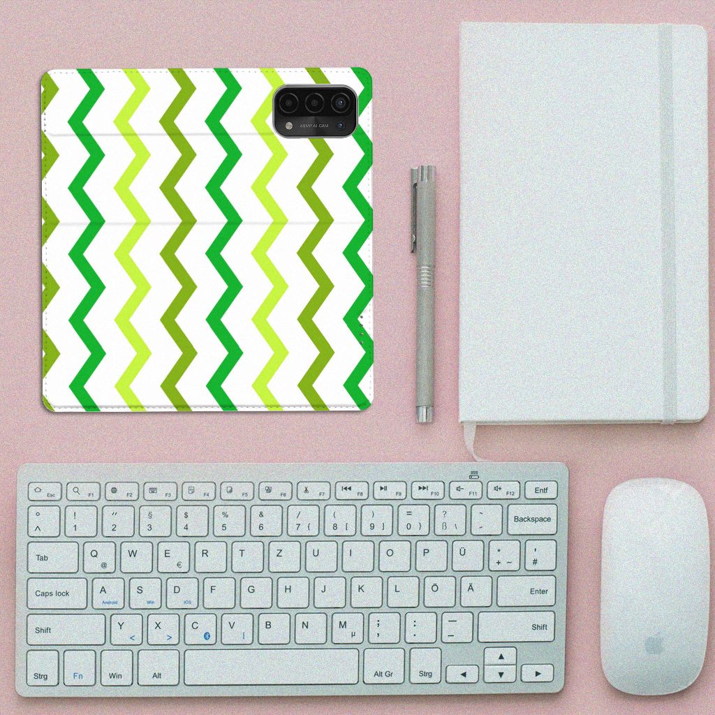 OPPO A54 5G | A74 5G | A93 5G Hoesje met Magneet Zigzag Groen