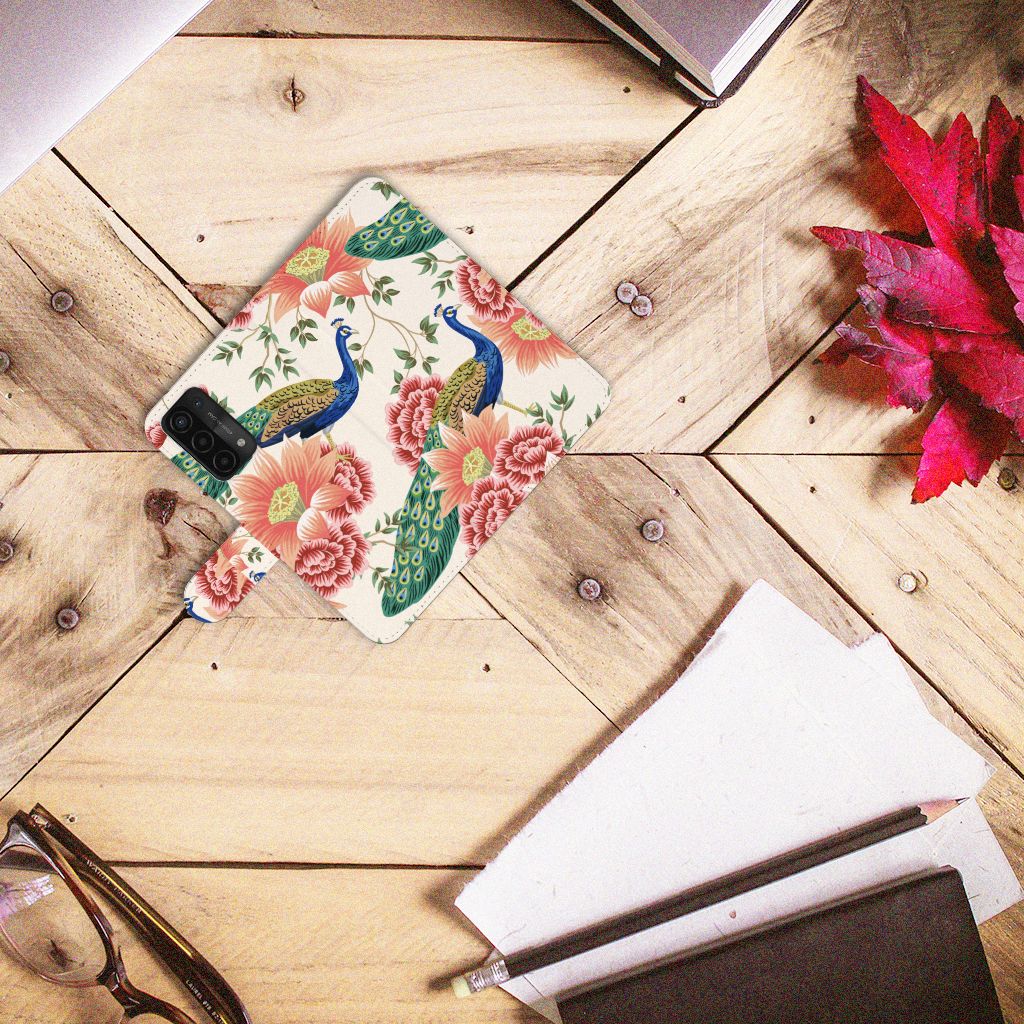 Telefoonhoesje met Pasjes voor OPPO A54 5G | A74 5G | A93 5G Pink Peacock