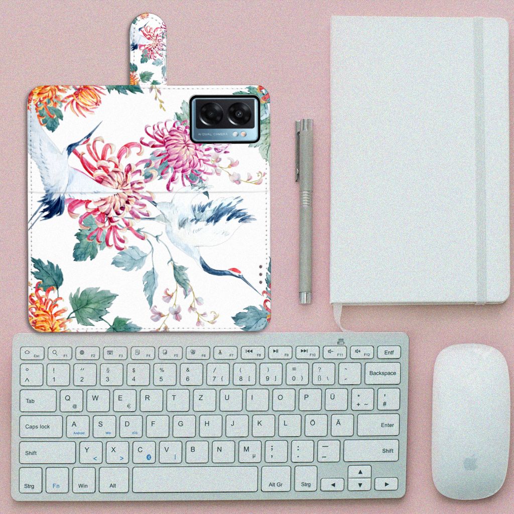 OPPO A77 5G | A57 5G Telefoonhoesje met Pasjes Bird Flowers