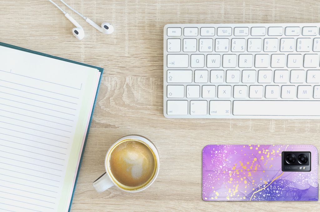Bookcase voor OPPO A77 5G | A57 5G Watercolor Paars