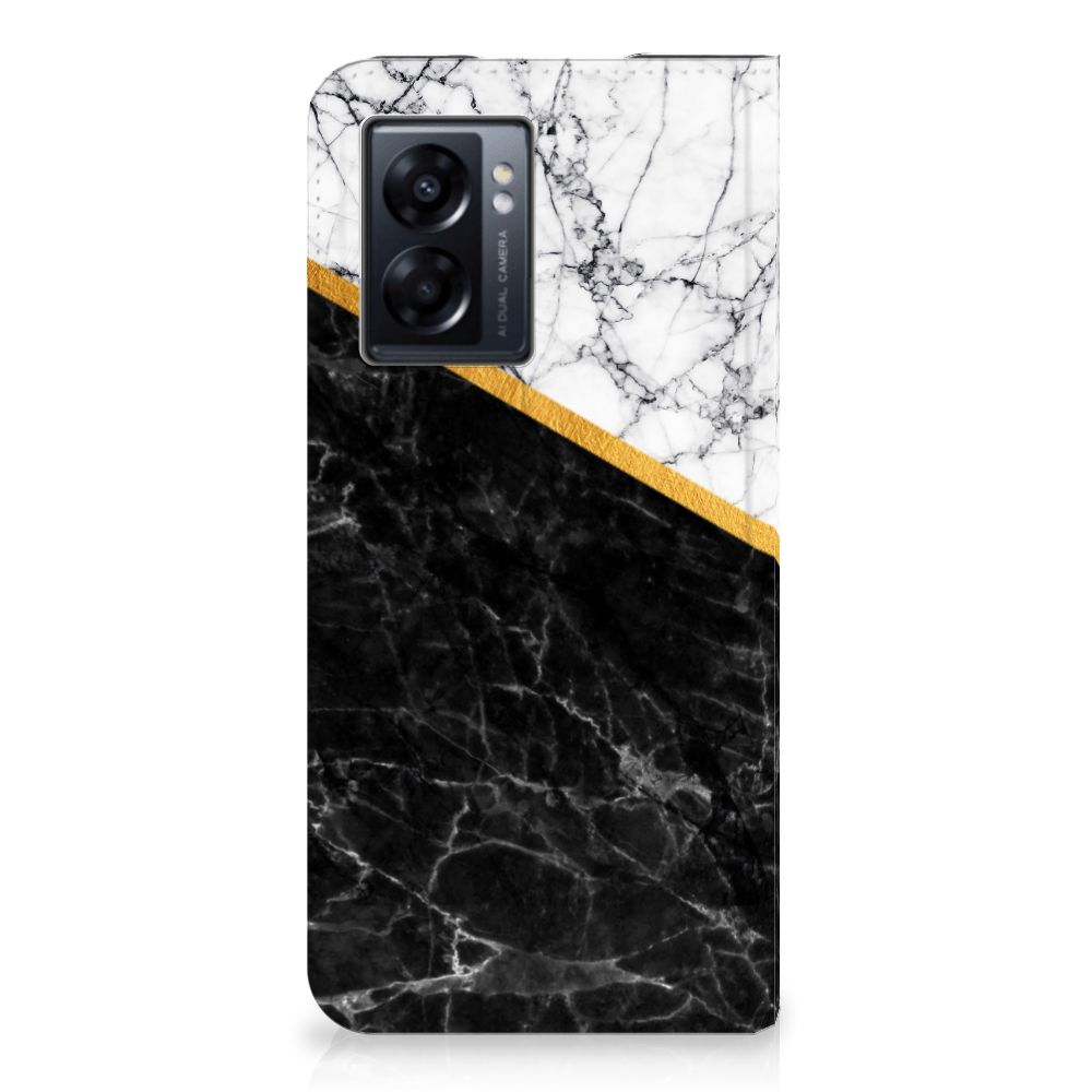 OPPO A77 5G | A57 5G Standcase Marmer Wit Zwart - Origineel Cadeau Man