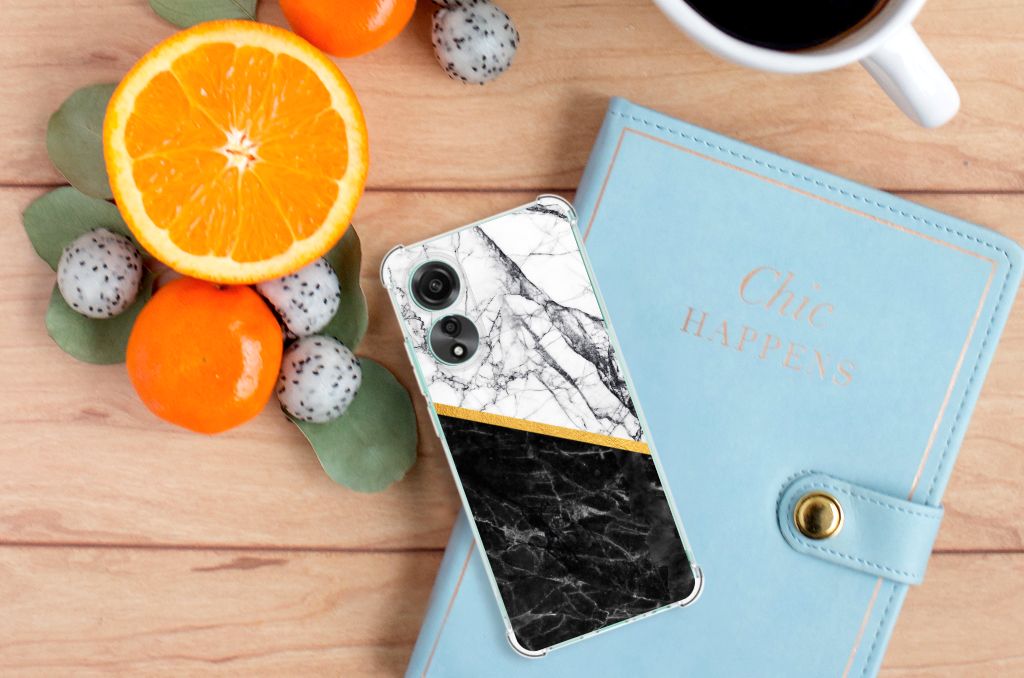 OPPO A78 4G Anti-Shock Hoesje Marmer Wit Zwart - Origineel Cadeau Man