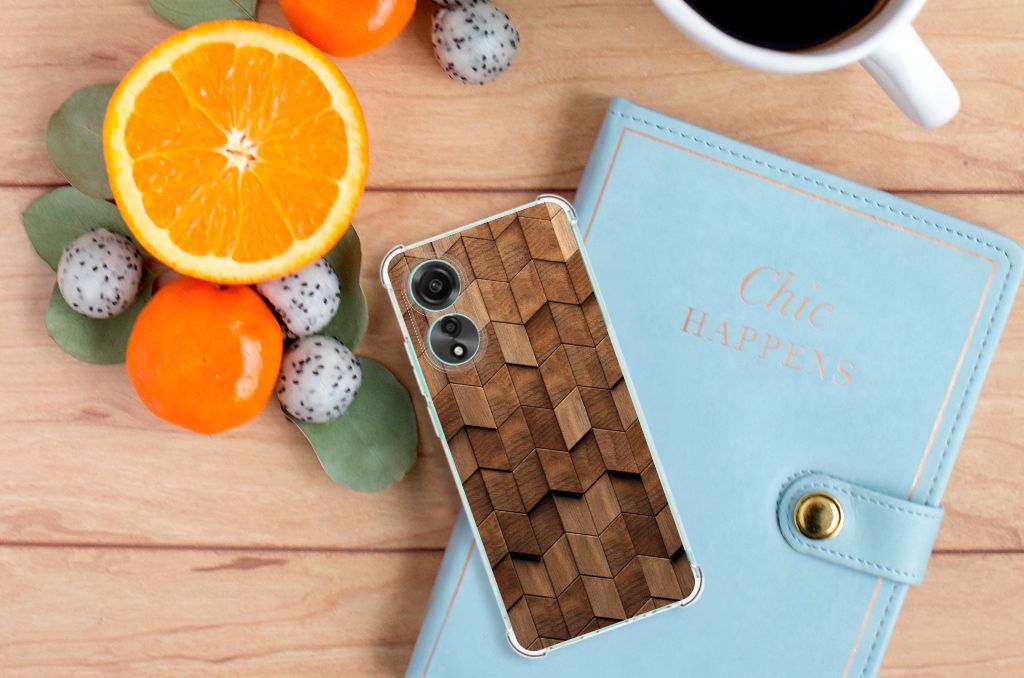 Stevig Telefoonhoesje voor OPPO A78 4G Wooden Cubes
