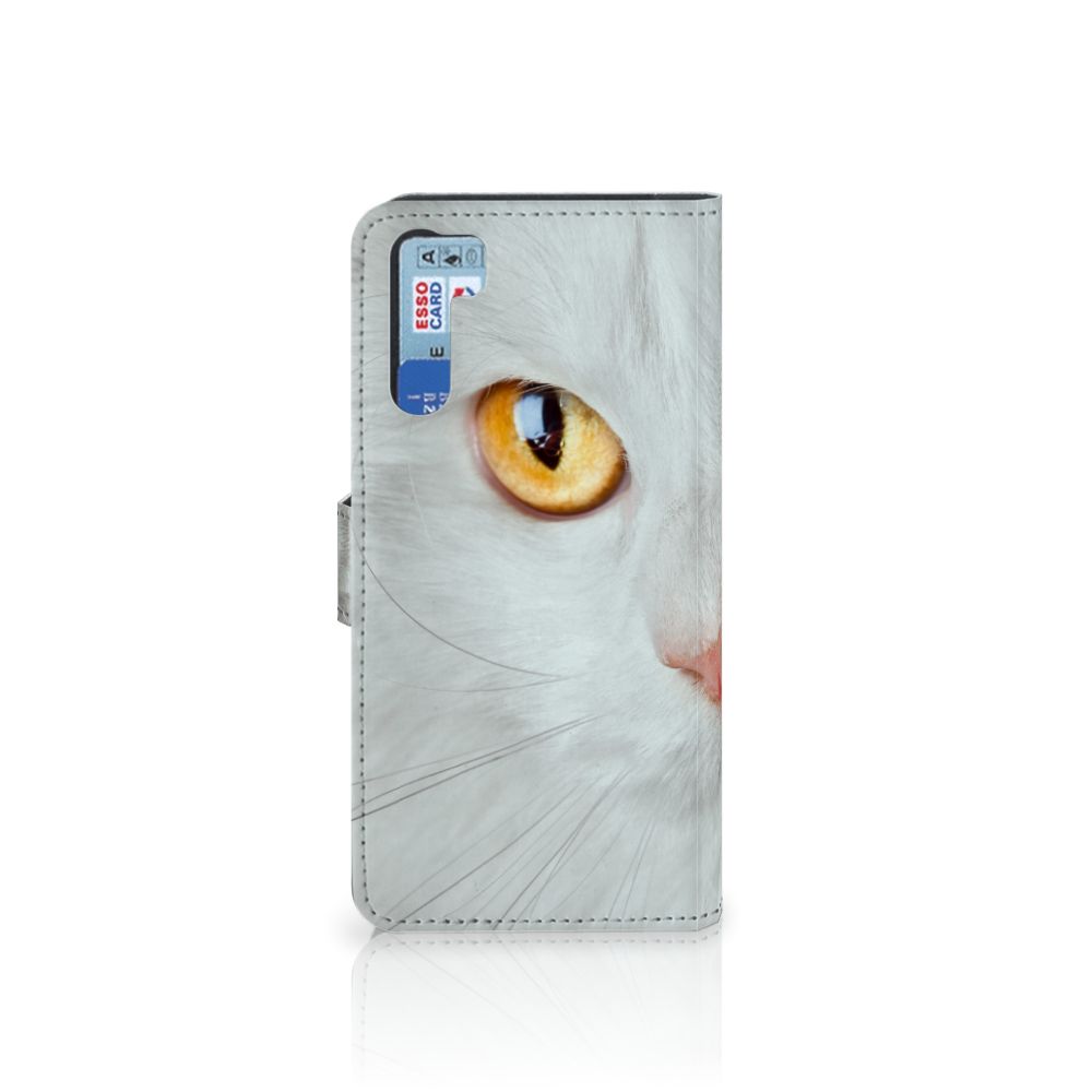 OPPO A91 | Reno3 Telefoonhoesje met Pasjes Witte Kat