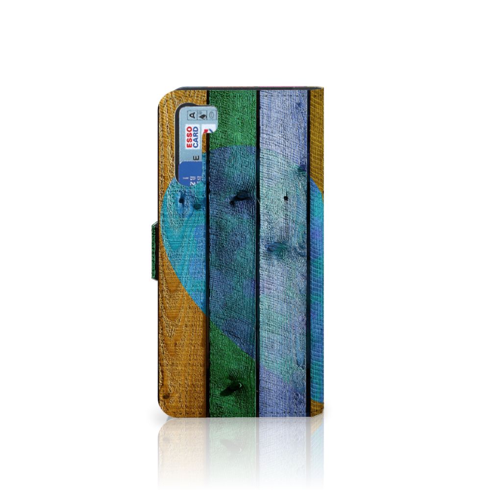 OPPO A91 | Reno3 Book Style Case Wood Heart - Cadeau voor je Vriend