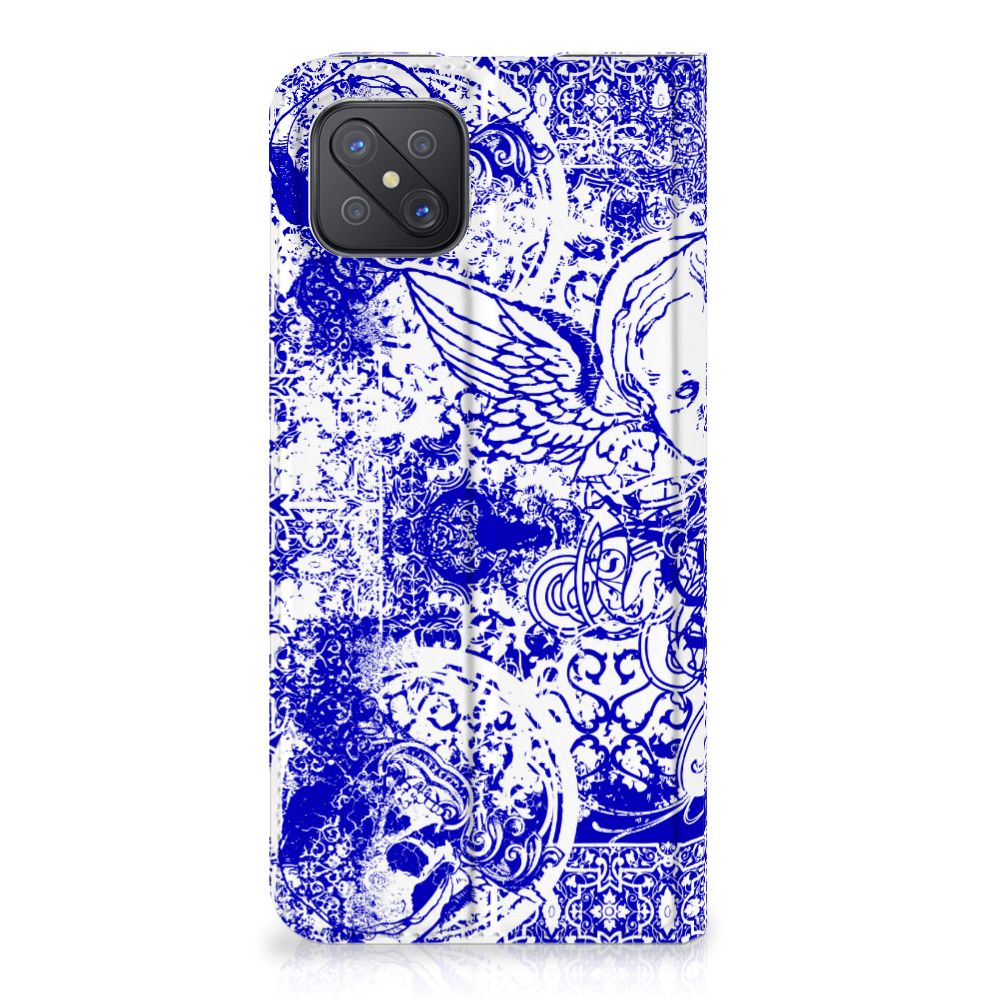 Mobiel BookCase OPPO Reno4 Z 5G Angel Skull Blauw
