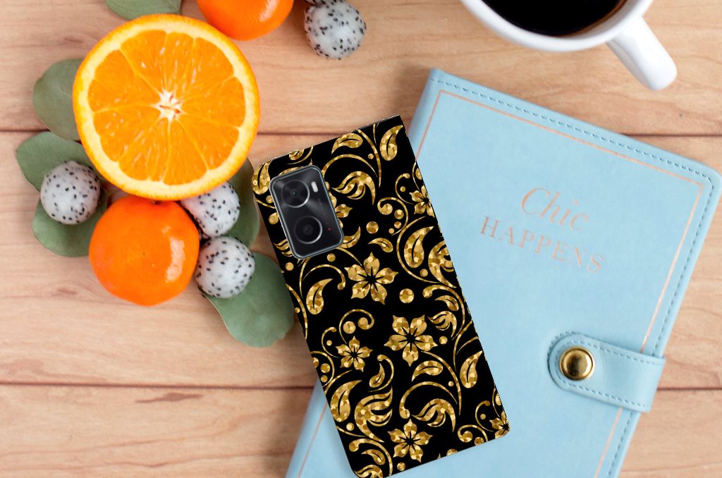 OPPO A96 | A76 Smart Cover Gouden Bloemen