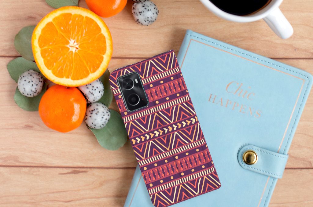 OPPO A96 | A76 Hoesje met Magneet Aztec Paars