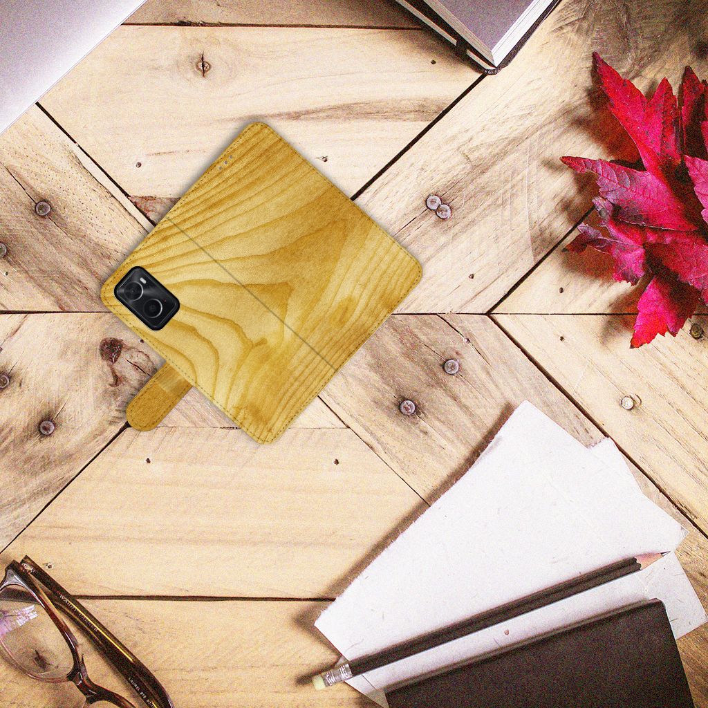 OPPO A76 | A96 Book Style Case Licht Hout