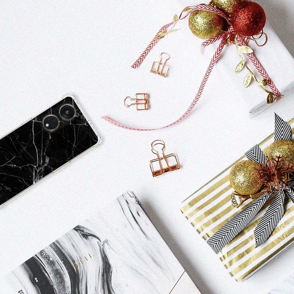 OPPO A98 Anti-Shock Hoesje Marmer Zwart - Origineel Cadeau Vader