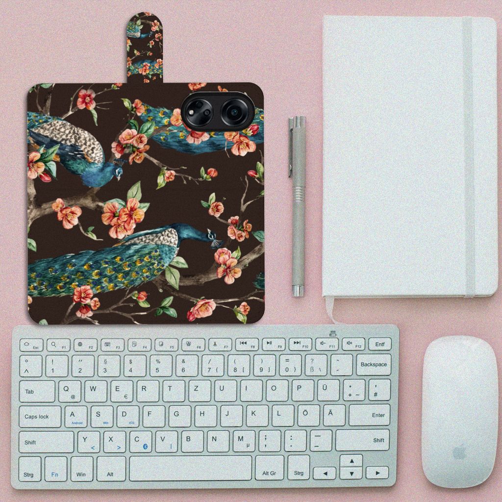 OPPO A98 5G Telefoonhoesje met Pasjes Pauw met Bloemen