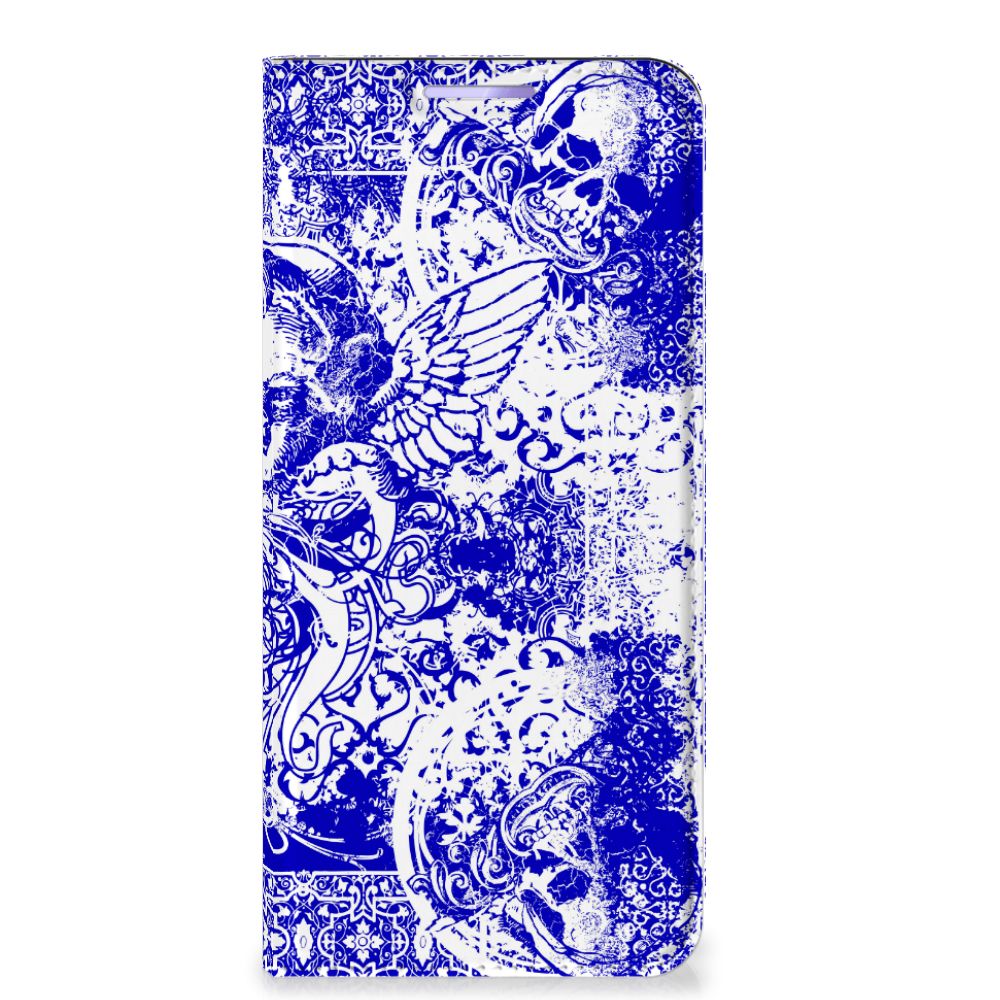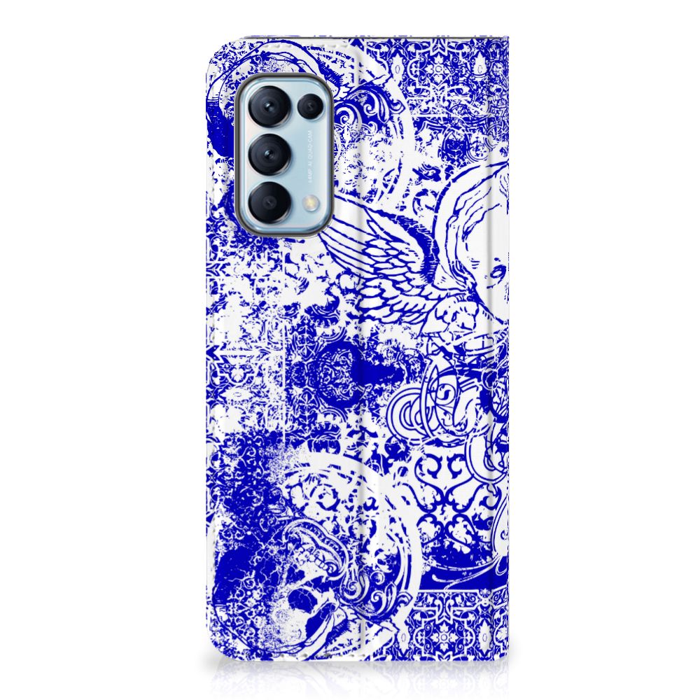 Mobiel BookCase OPPO Find X3 Lite Angel Skull Blauw
