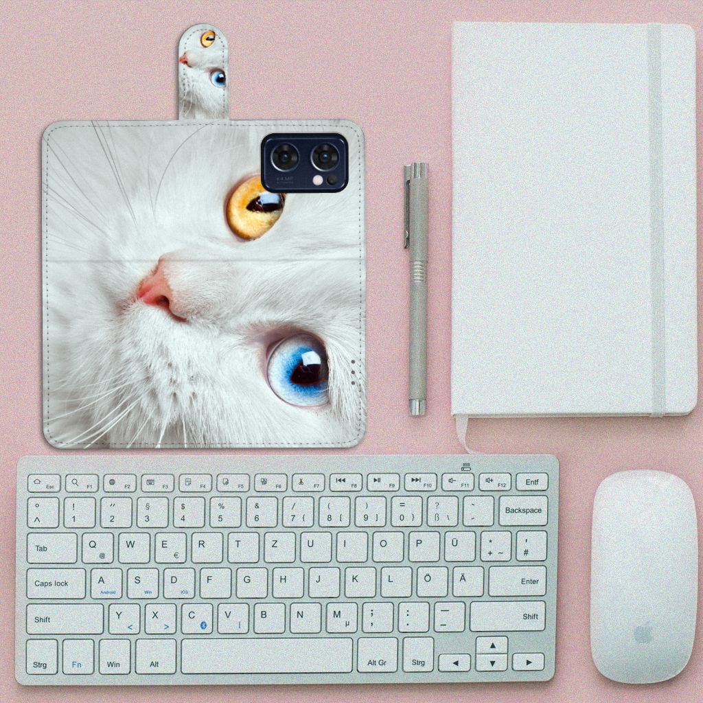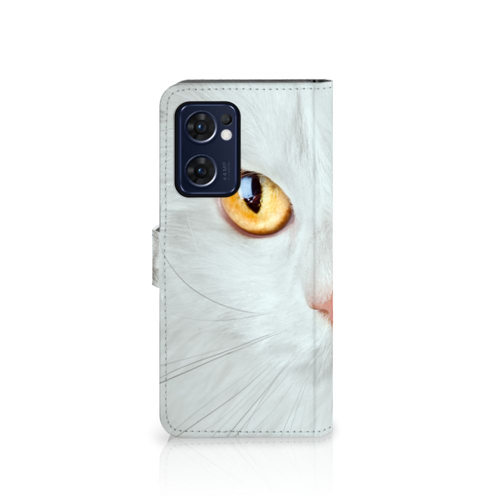 OPPO Find X5 Lite | Reno 7 5G Telefoonhoesje met Pasjes Witte Kat