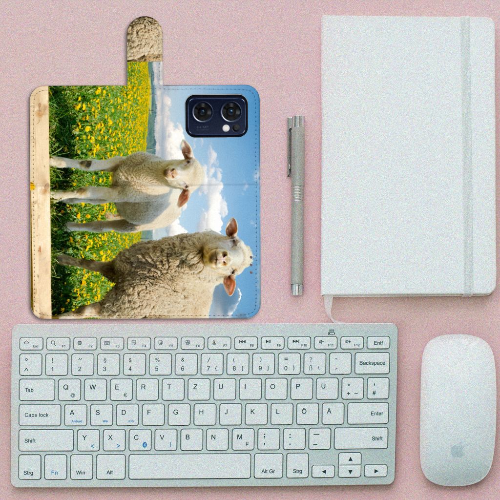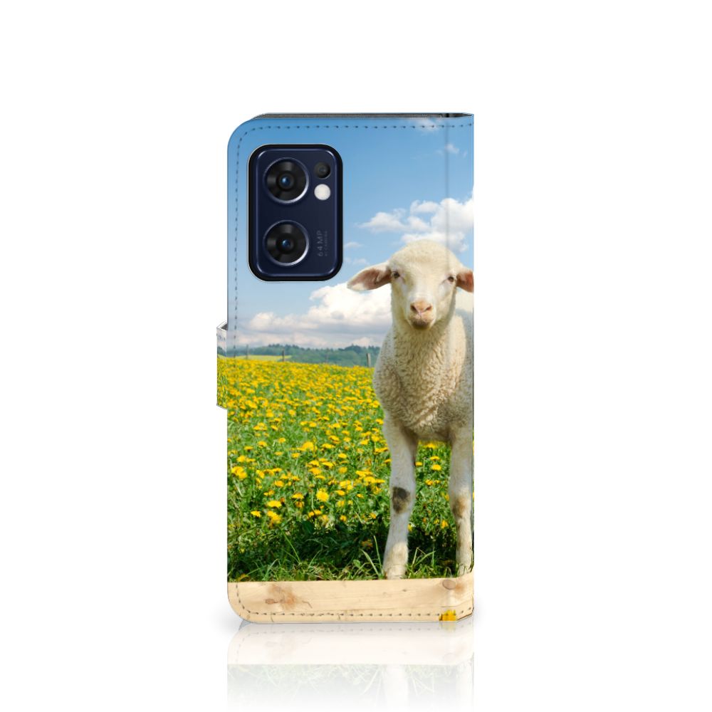 OPPO Find X5 Lite | Reno 7 5G Telefoonhoesje met Pasjes Schaap en Lammetje