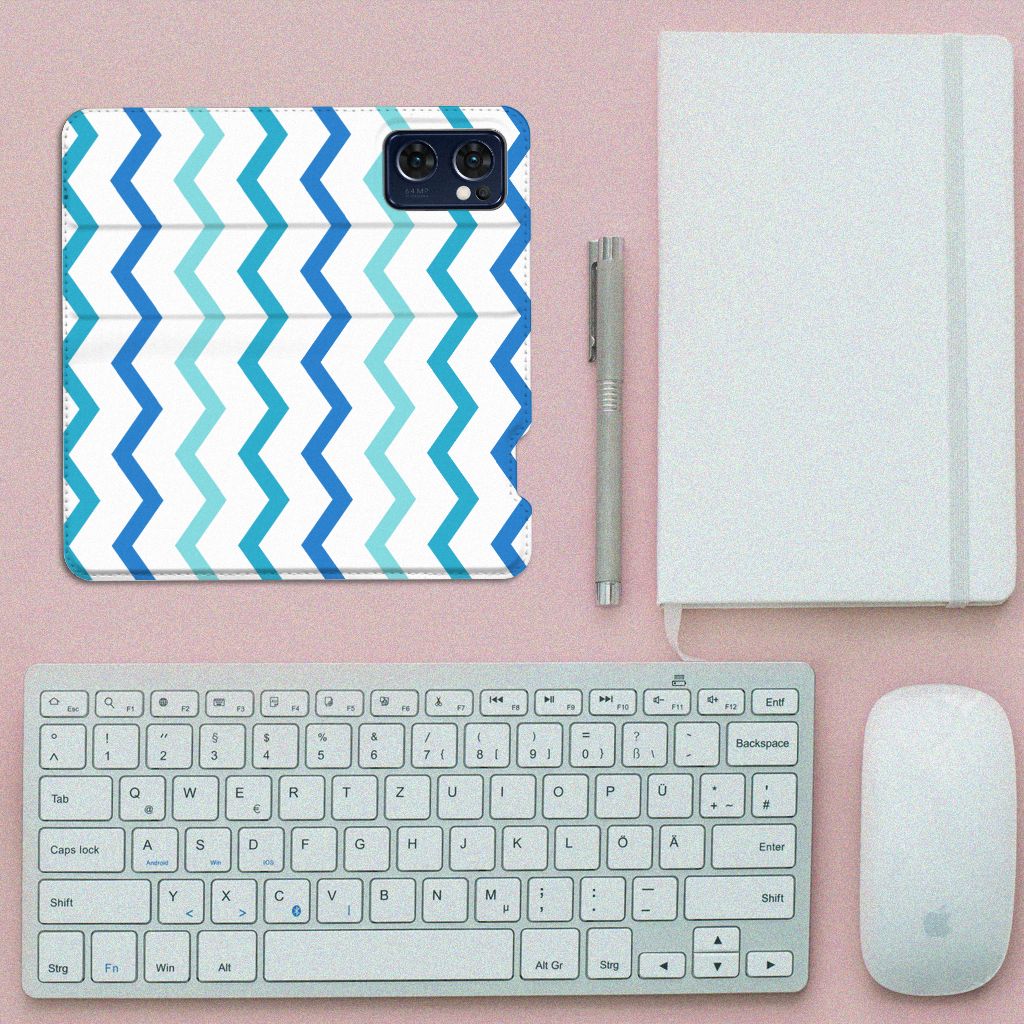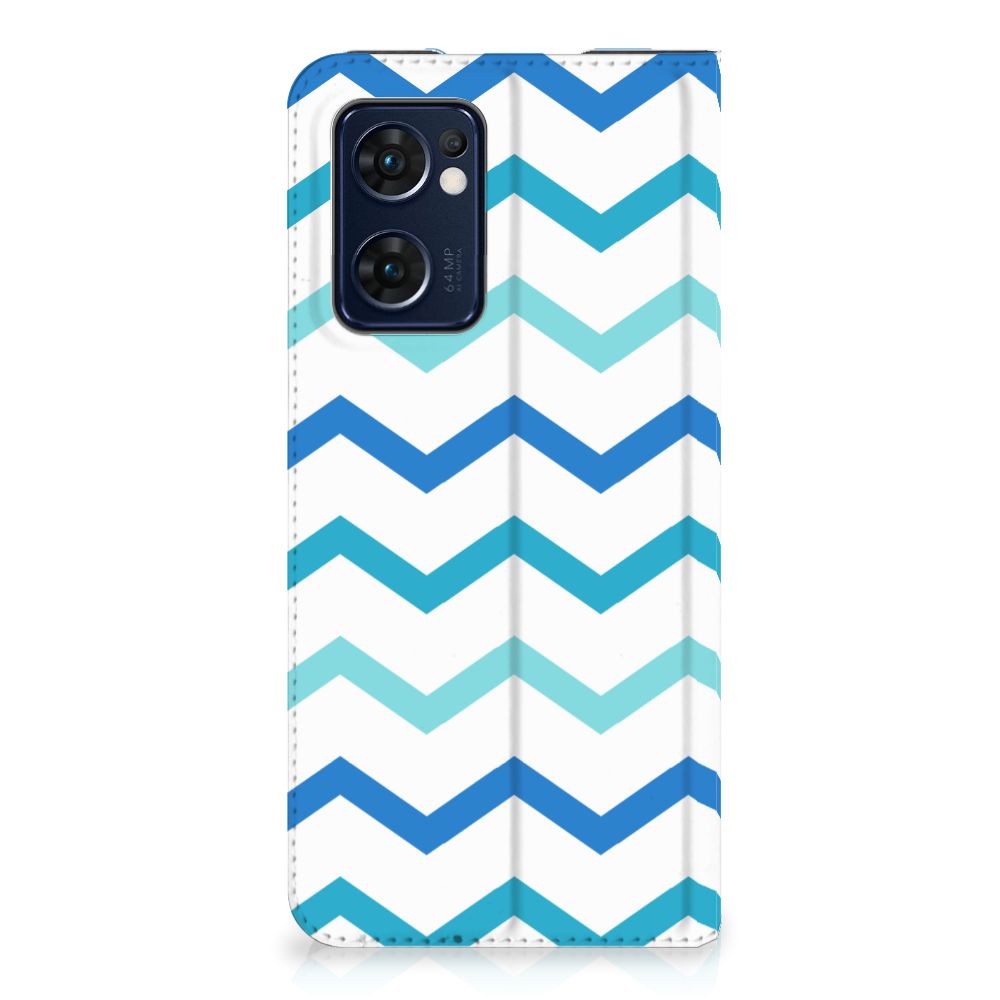 OPPO Find X5 Lite | Reno7 5G Hoesje met Magneet Zigzag Blauw