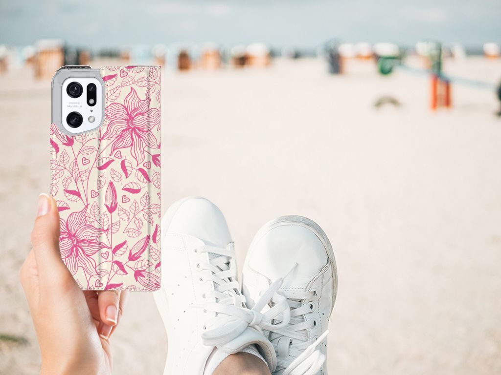 OPPO Find X5 Pro Smart Cover Pink Flowers