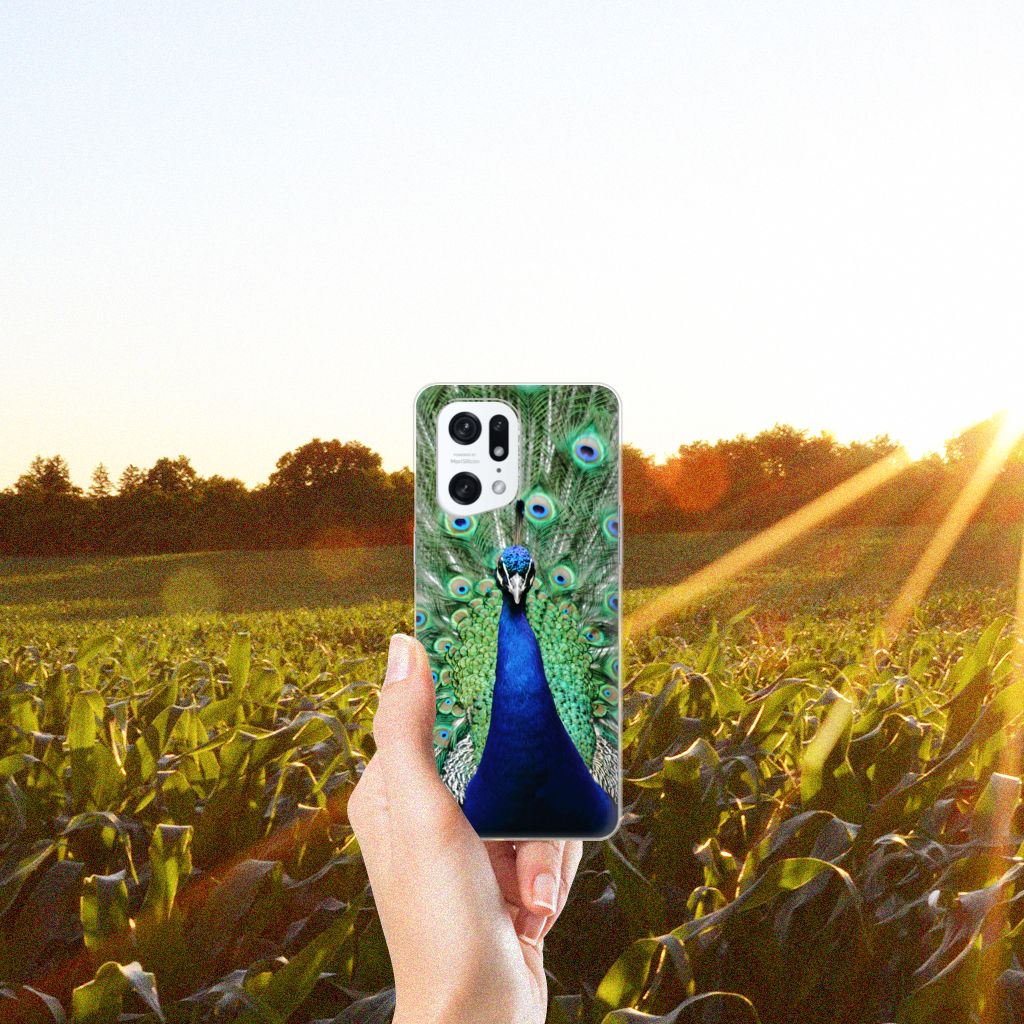 OPPO Find X5 Pro Dierenprint Telefoonhoesje Pauw met Bloemen