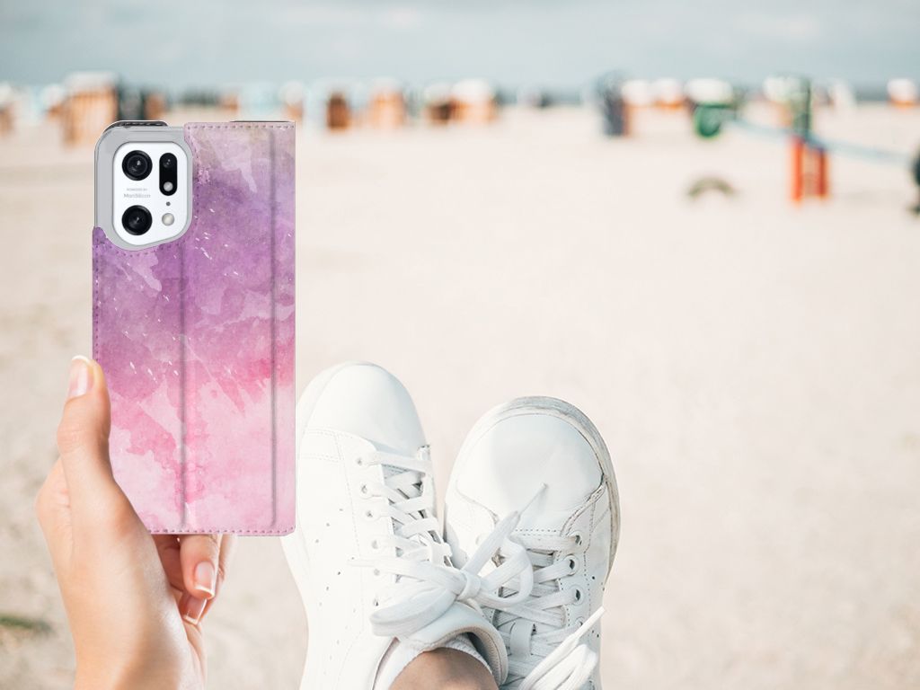 Bookcase OPPO Find X5 Pro Pink Purple Paint