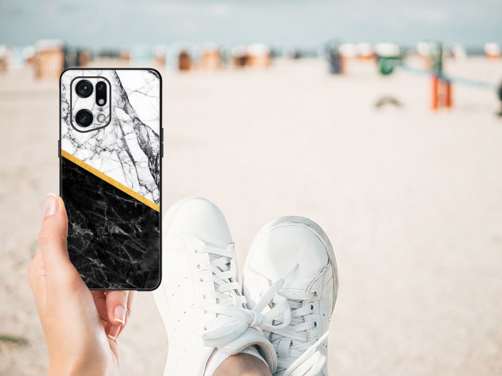 OPPO Find X5 Pro Marmeren Print Telefoonhoesje Marmer Wit Zwart - Origineel Cadeau Man