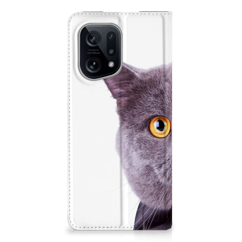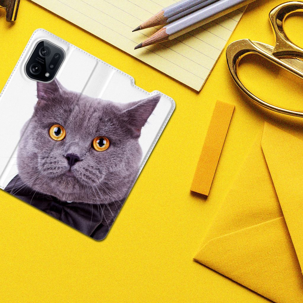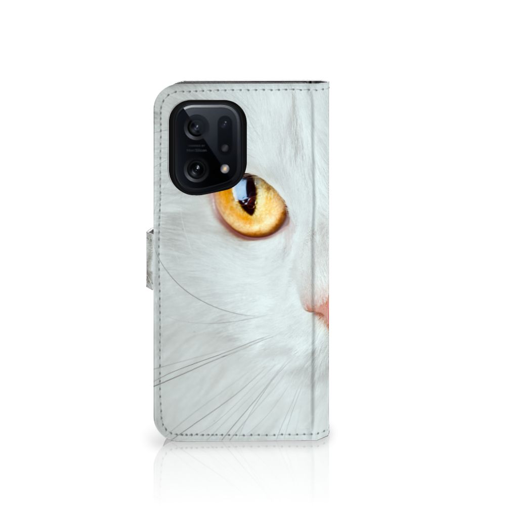 OPPO Find X5 Telefoonhoesje met Pasjes Witte Kat