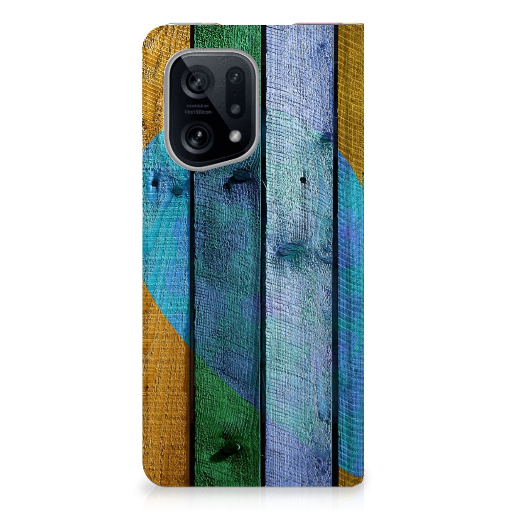 OPPO Find X5 Book Wallet Case Wood Heart - Cadeau voor je Vriend