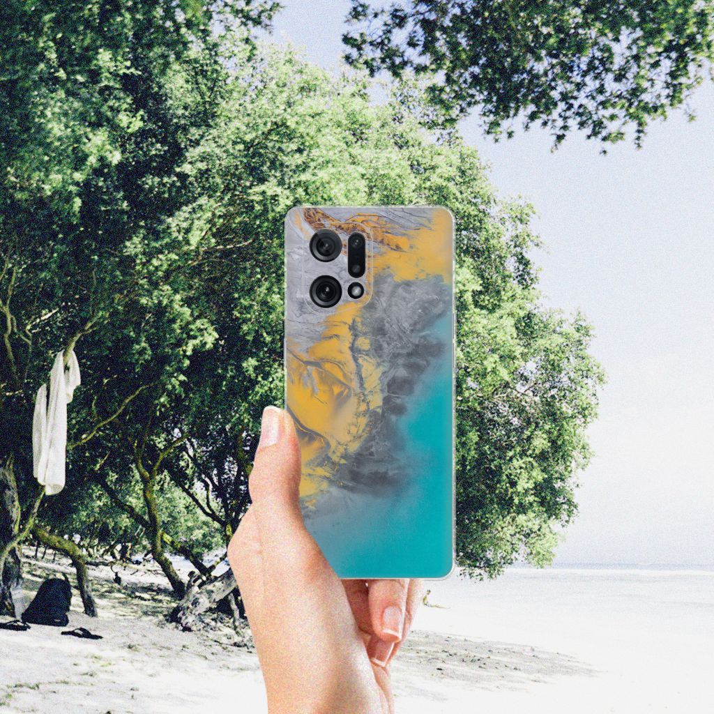 OPPO Find X5 TPU Siliconen Hoesje Marble Blue Gold
