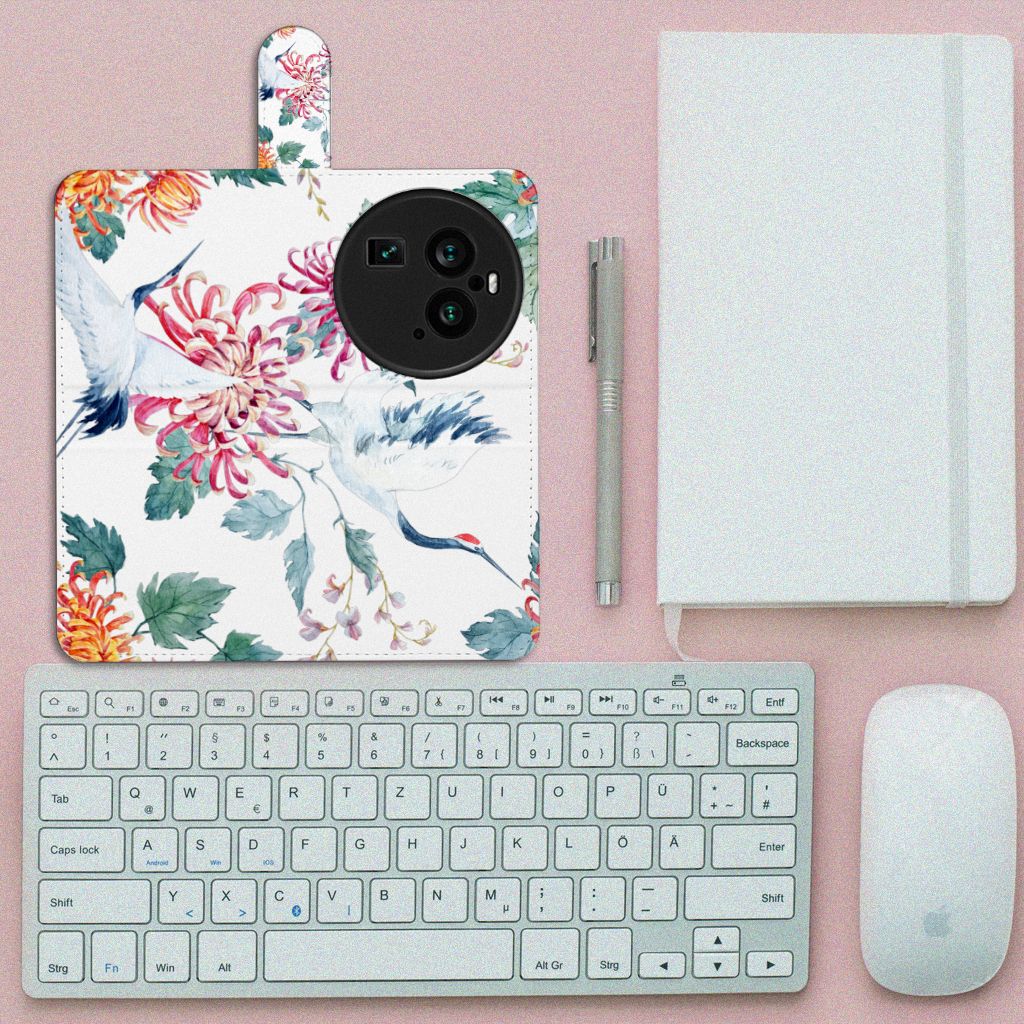 OPPO Find X6 Pro Telefoonhoesje met Pasjes Bird Flowers