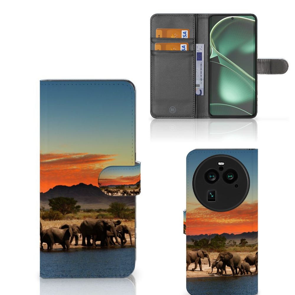 OPPO Find X6 Pro Telefoonhoesje met Pasjes Olifanten