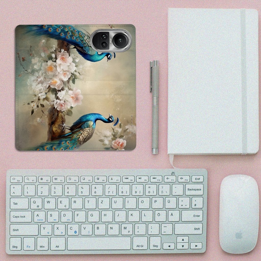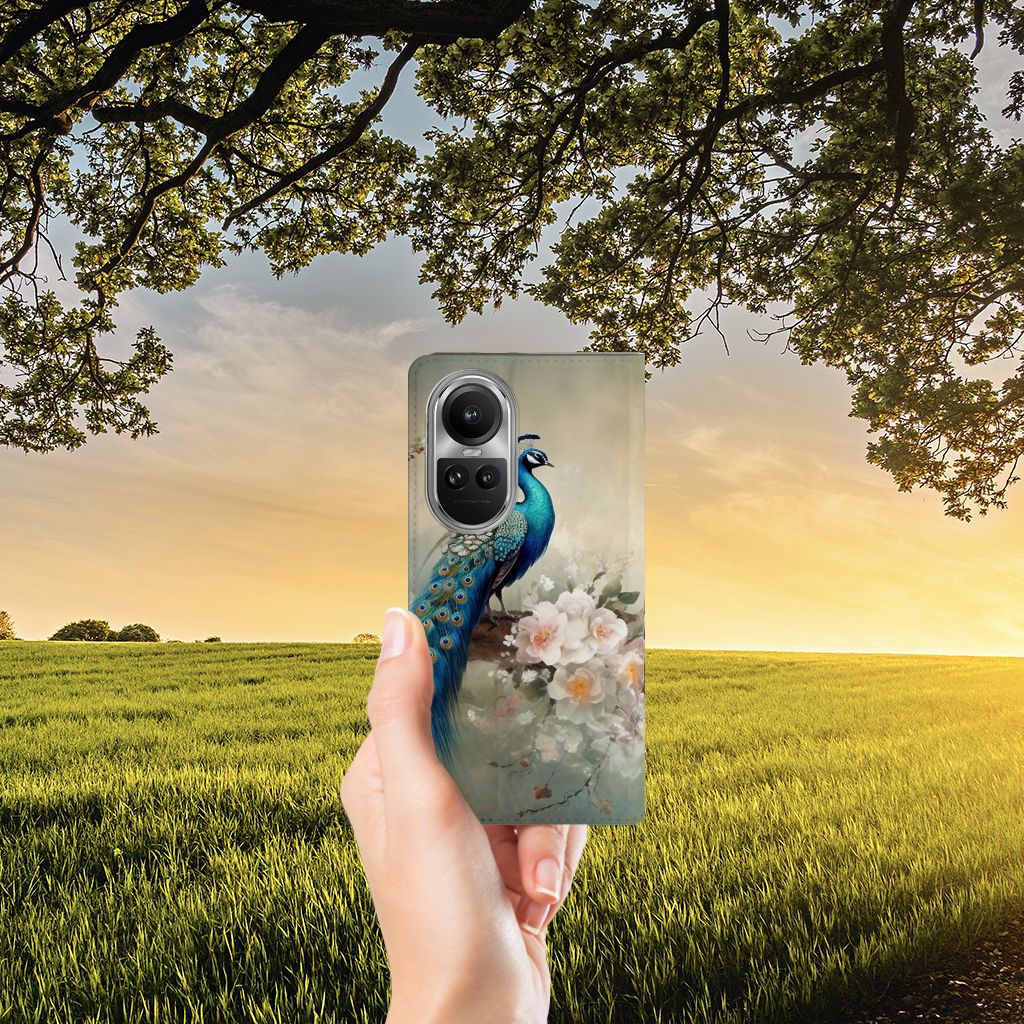 OPPO Reno10 | 10 Pro Hoesje maken Pauw met Bloemen