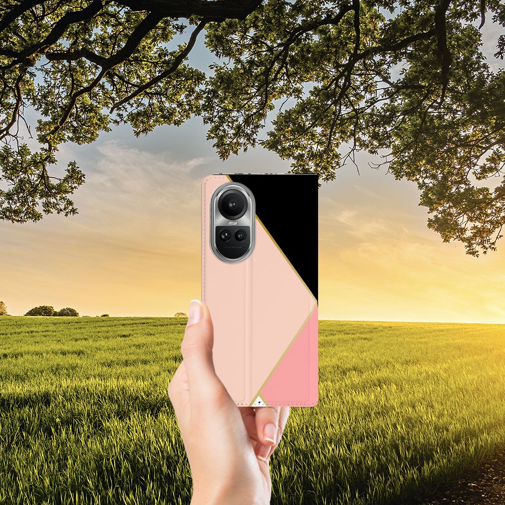 OPPO Reno10 | 10 Pro Stand Case Zwart Roze Vormen