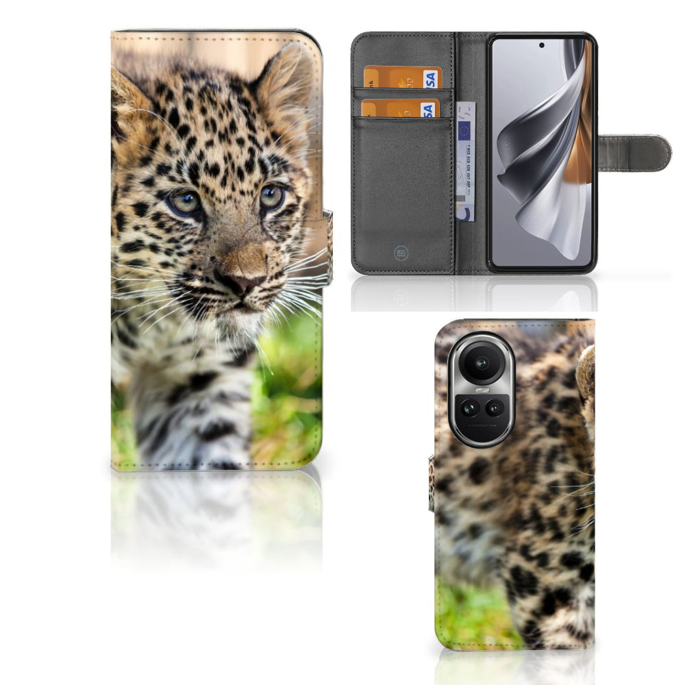 OPPO Reno10 | 10 Pro Telefoonhoesje met Pasjes Baby Luipaard