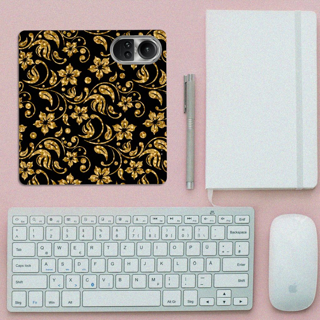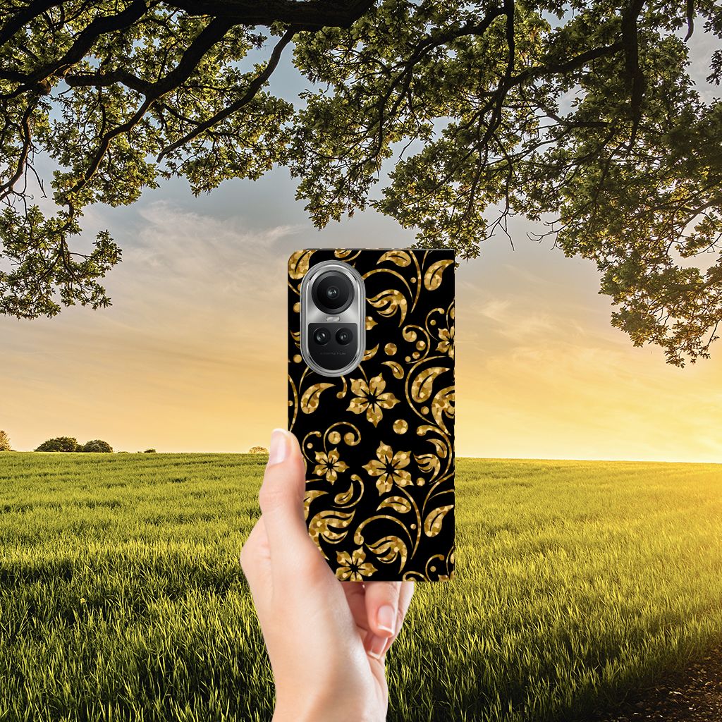OPPO Reno10 | 10 Pro Smart Cover Gouden Bloemen