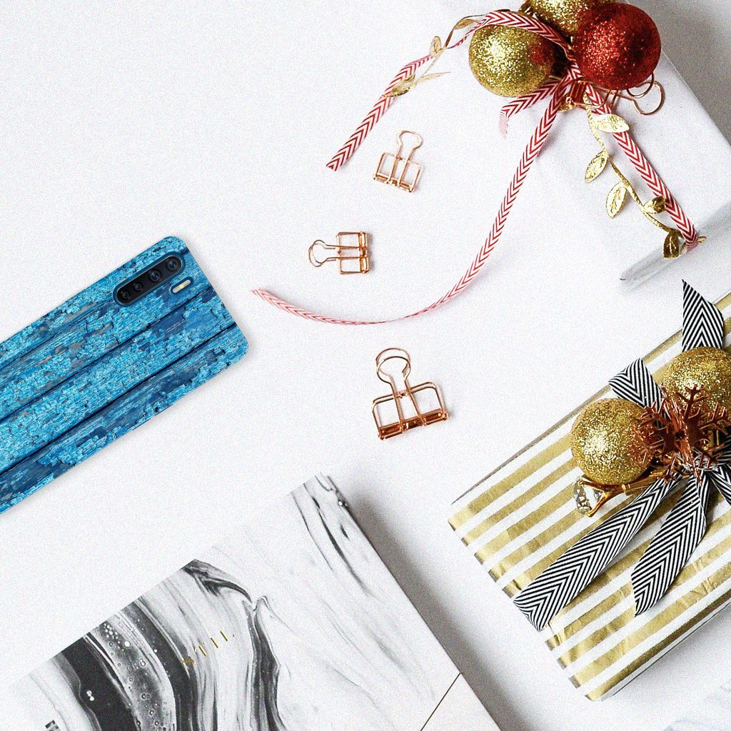 OPPO A91 Bumper Hoesje Wood Blue