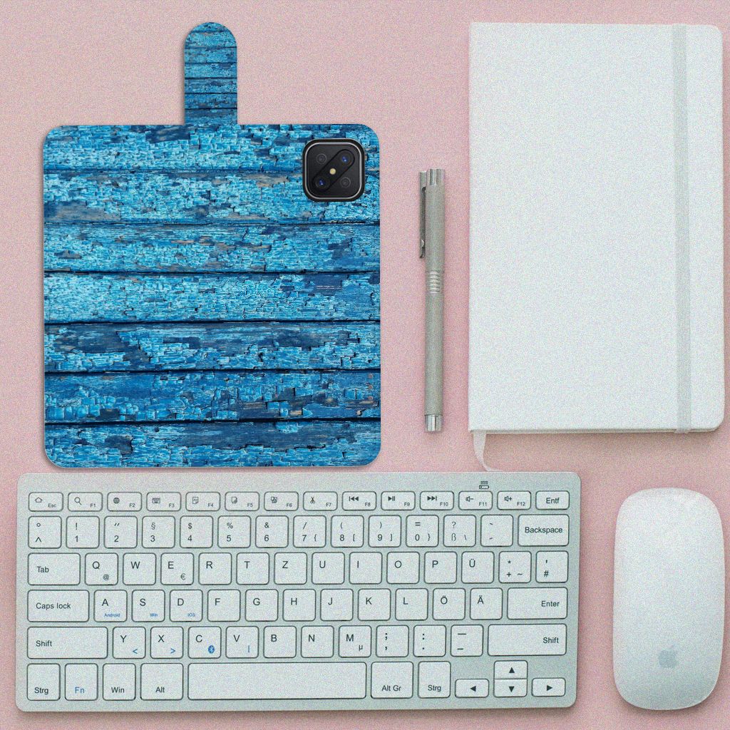 OPPO Reno4 Z Book Style Case Wood Blue