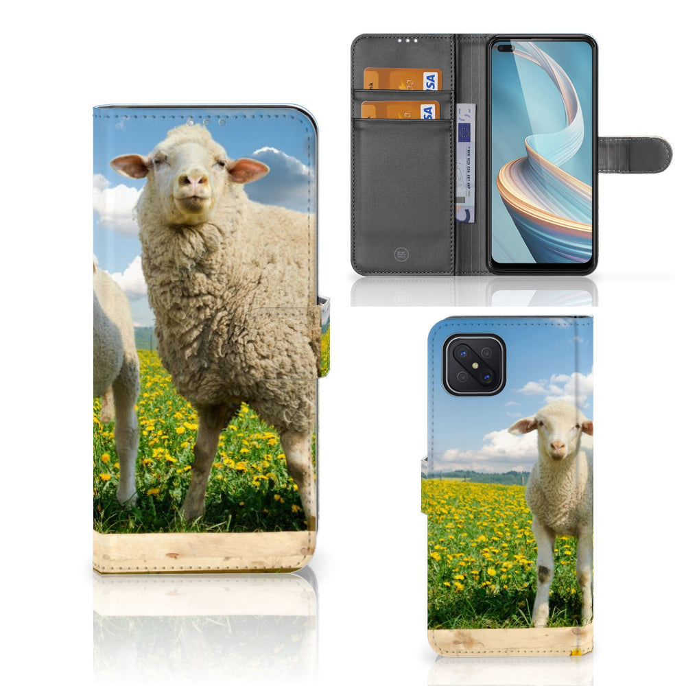 OPPO Reno4 Z Telefoonhoesje met Pasjes Schaap en Lammetje