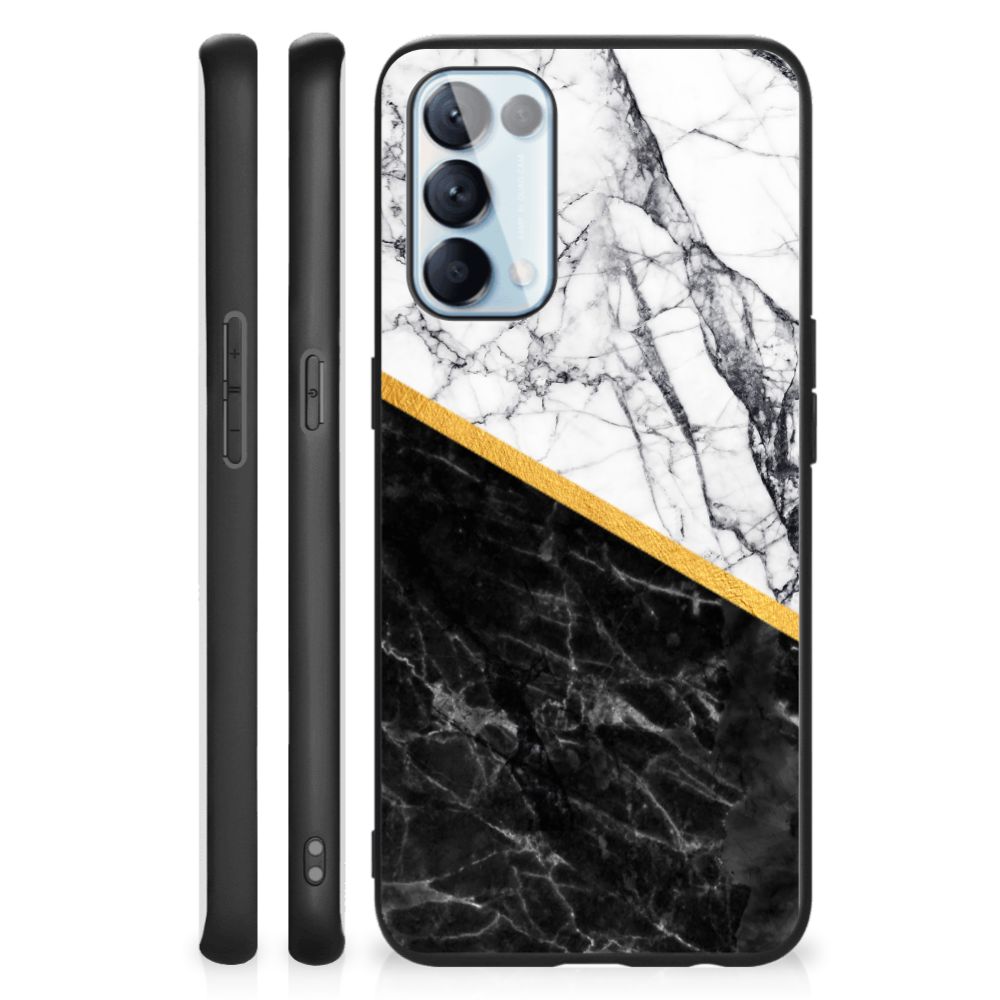 OPPO Reno5 5G | Find X3 Lite Marmeren Print Telefoonhoesje Marmer Wit Zwart - Origineel Cadeau Man