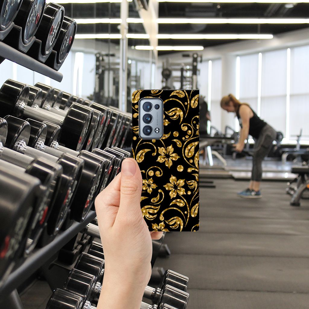 OPPO Reno 6 Pro Plus 5G Smart Cover Gouden Bloemen