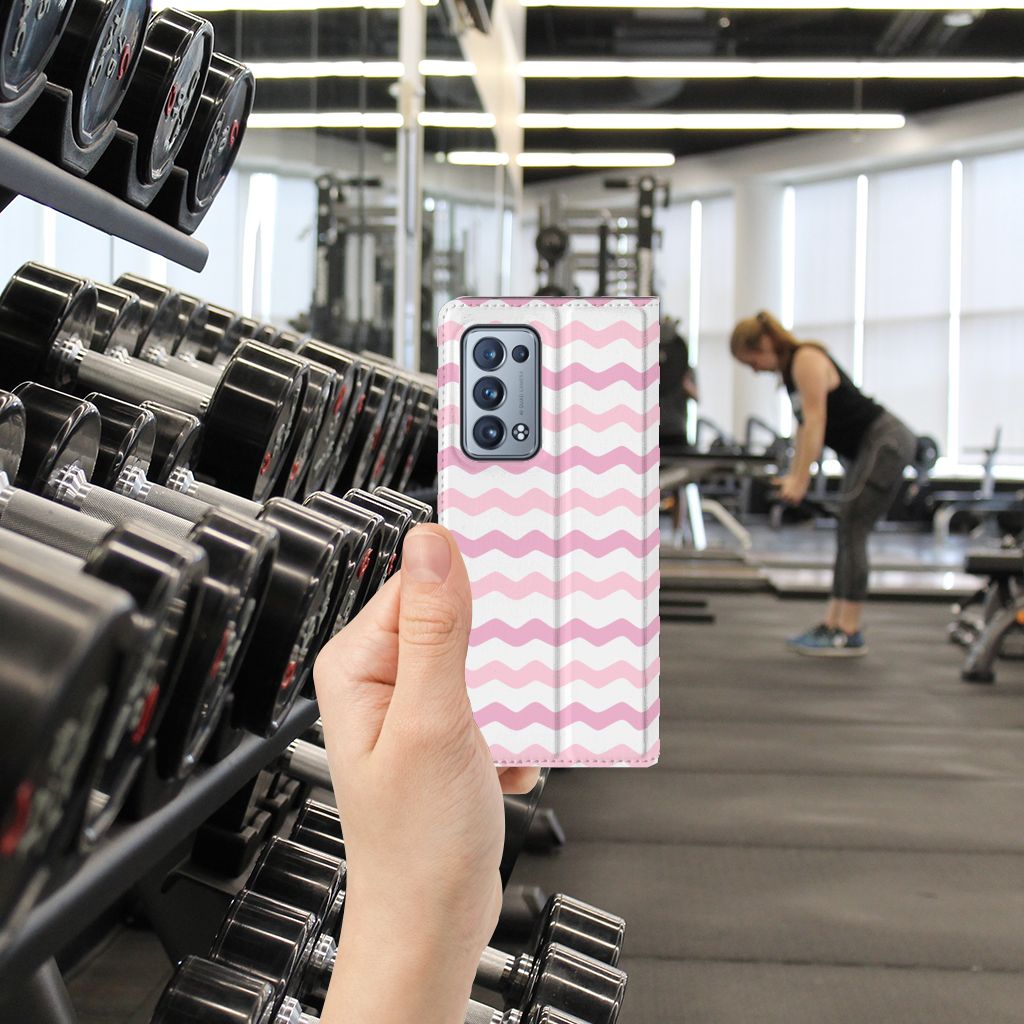 OPPO Reno 6 Pro Plus 5G Hoesje met Magneet Waves Roze