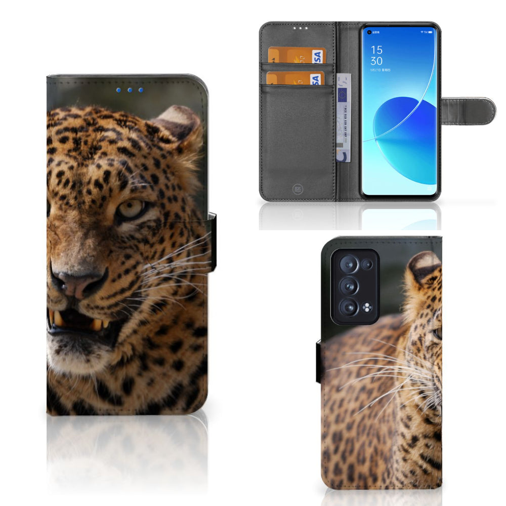 OPPO Reno 6 Pro Plus 5G Telefoonhoesje met Pasjes Luipaard