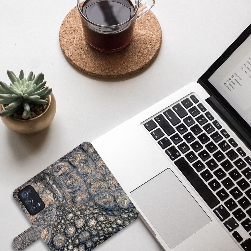 OPPO Reno 6 Pro Plus 5G Telefoonhoesje met Pasjes Krokodillenprint